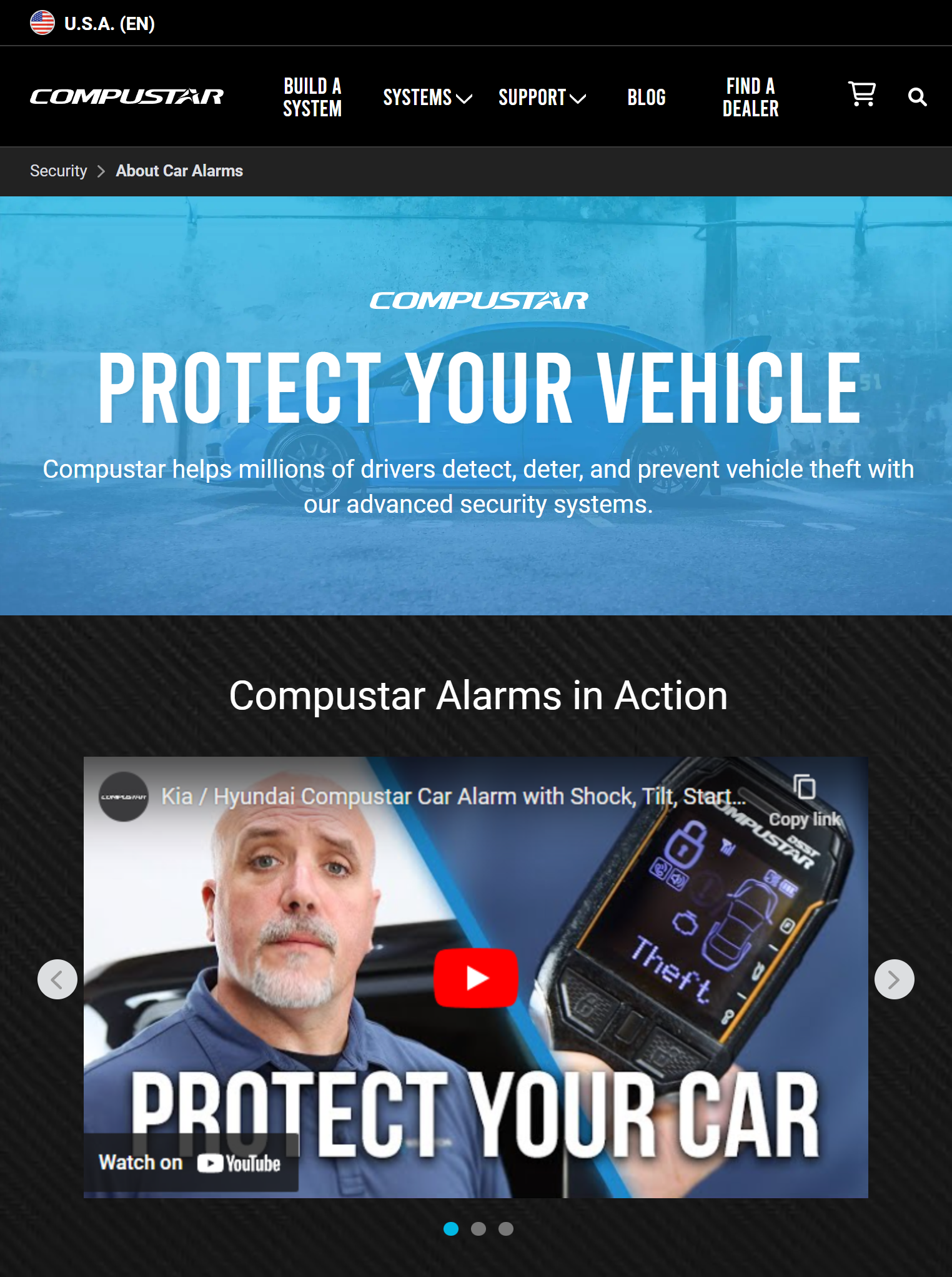 This is a landing page that I designed and curated to promote Compustar security features and drive car alarm sales.